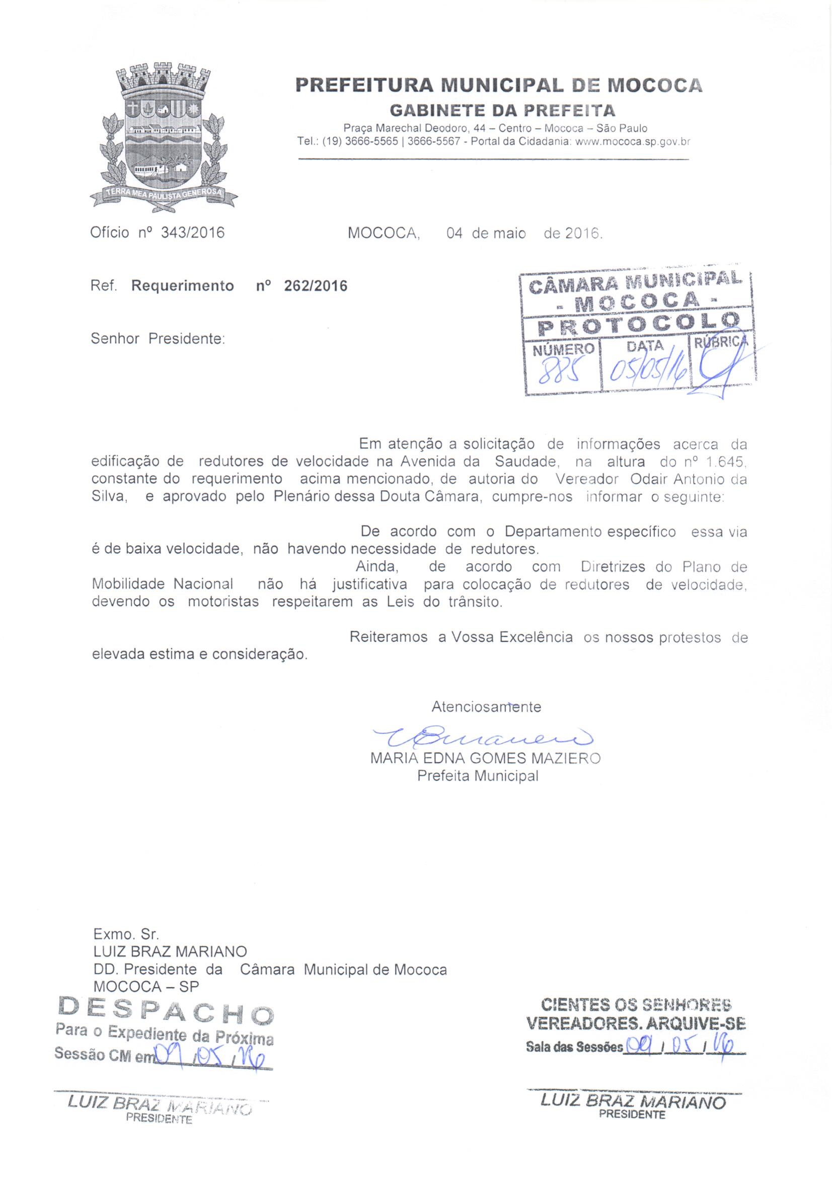Documentos Acessórios (Requerimento nº 262 de 2016)