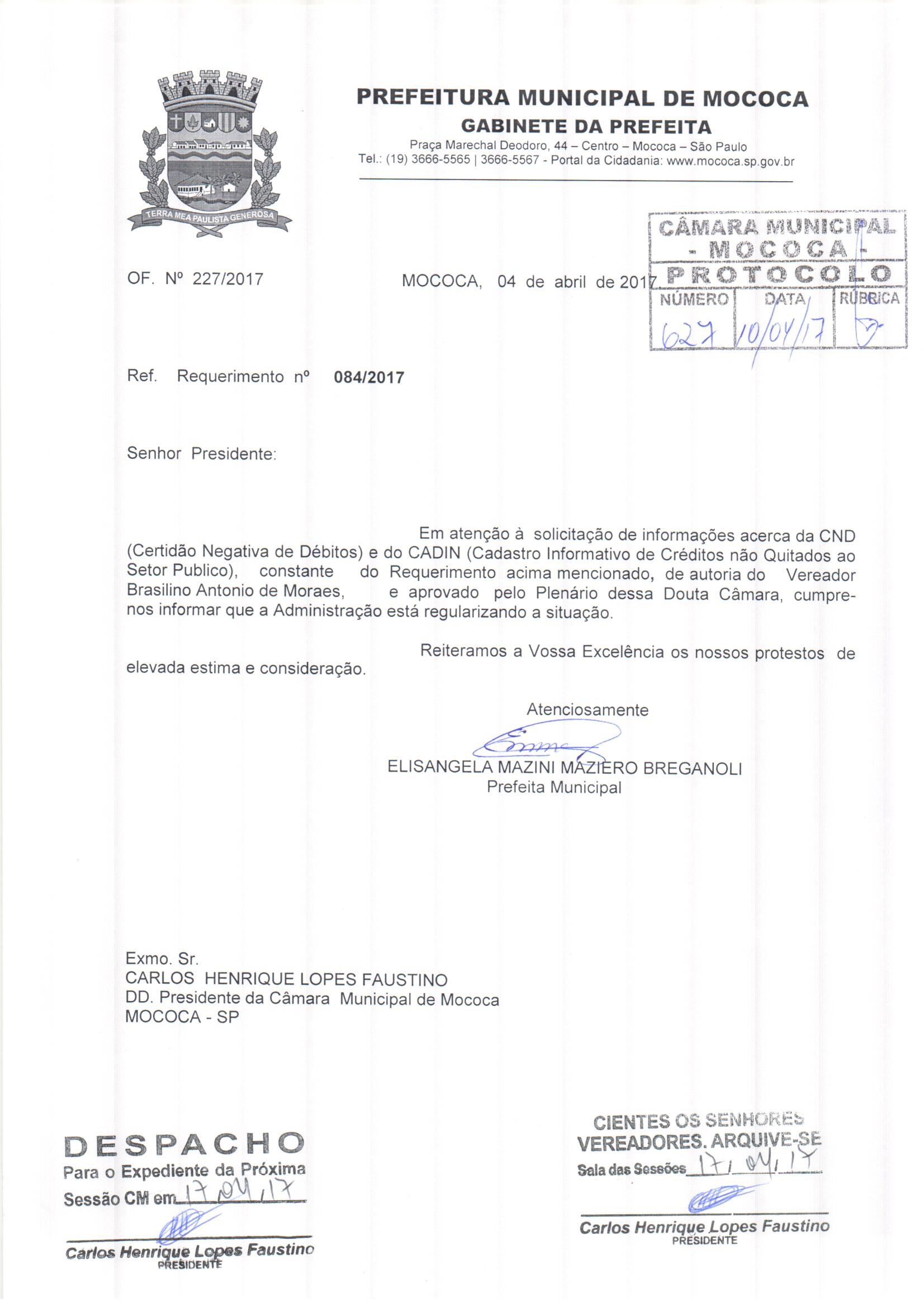 Documentos Acessórios (Requerimento nº 84 de 2017)