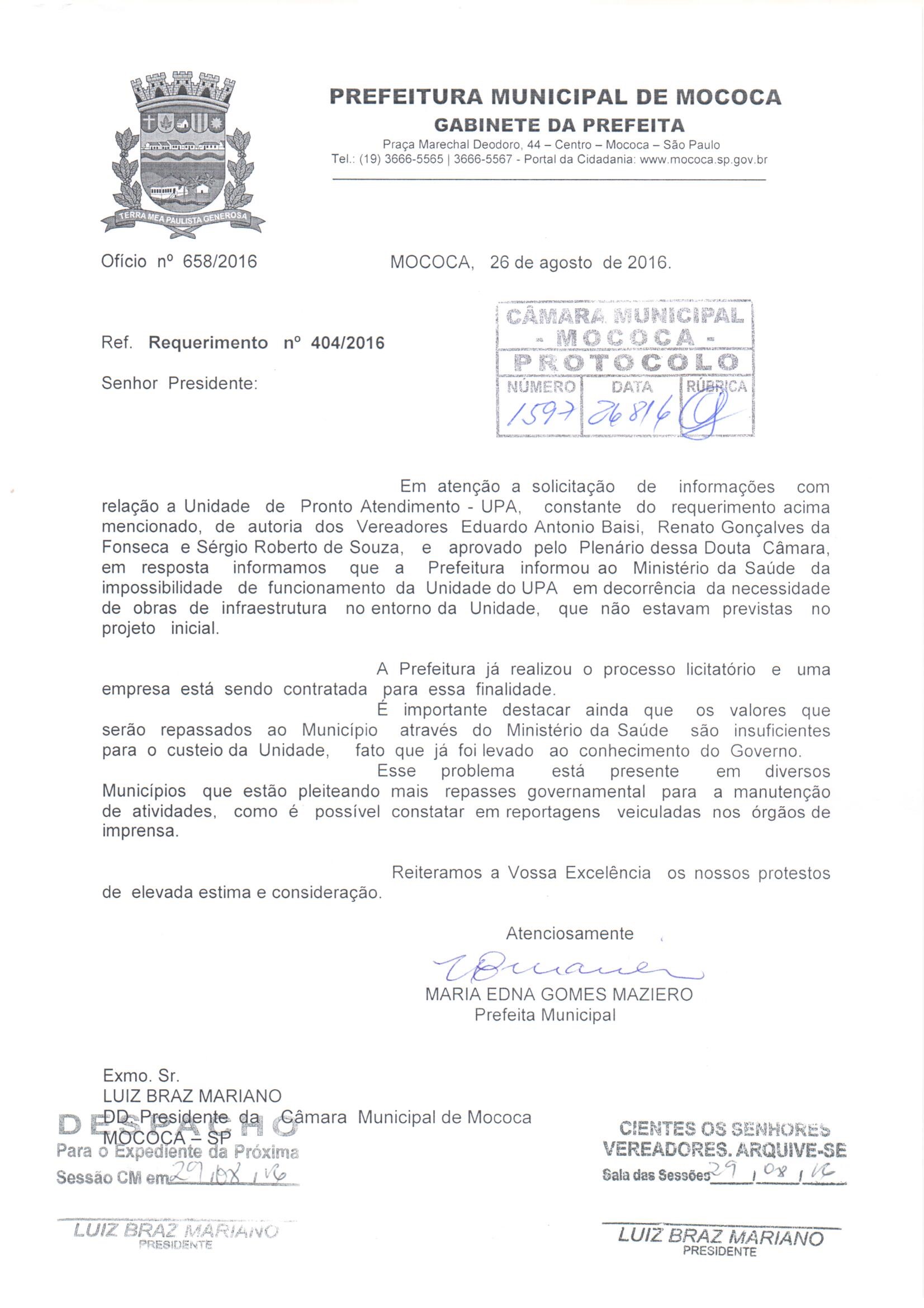 (Requerimento nº 404 de 2016)