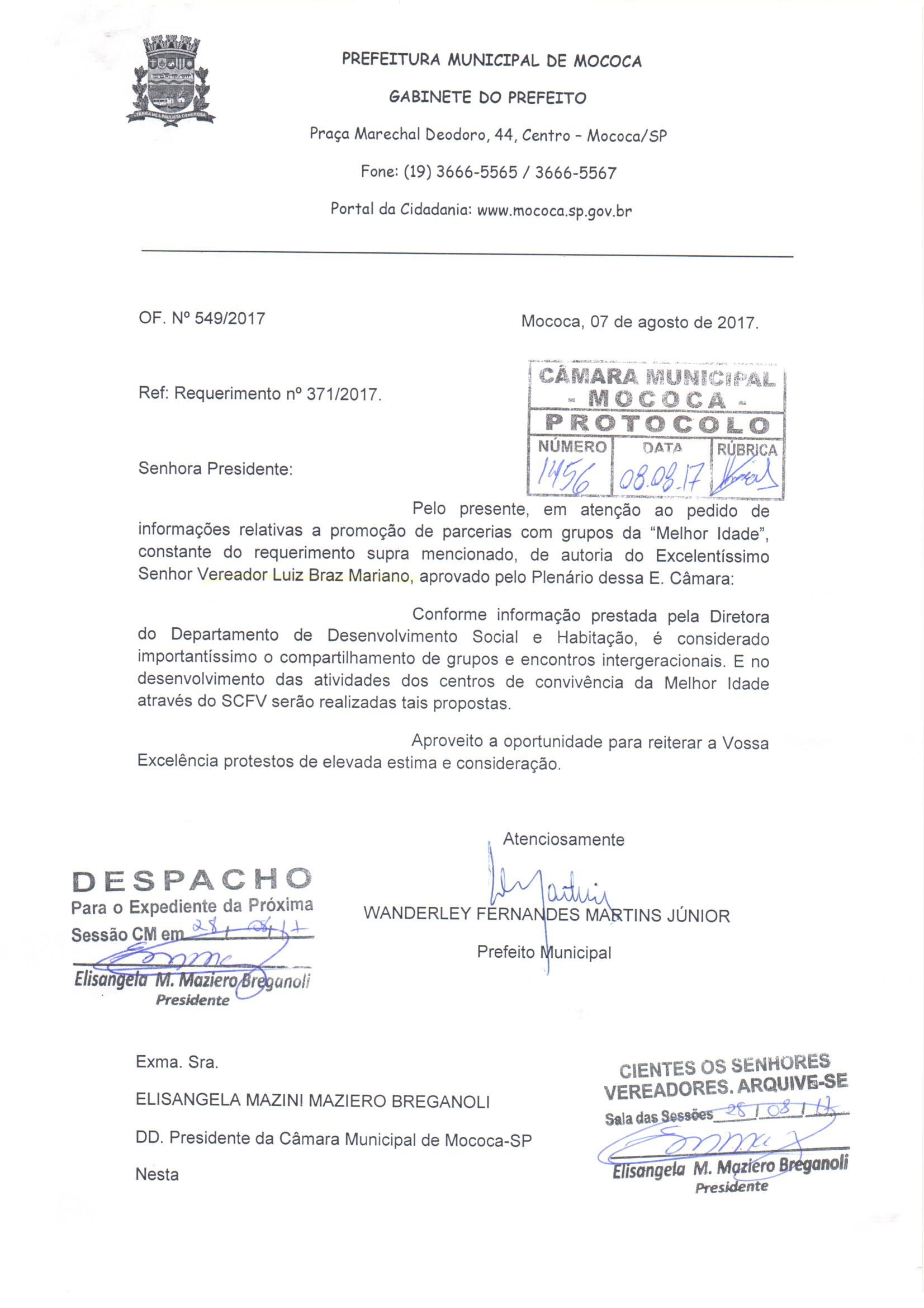 (Requerimento nº 371 de 2017)