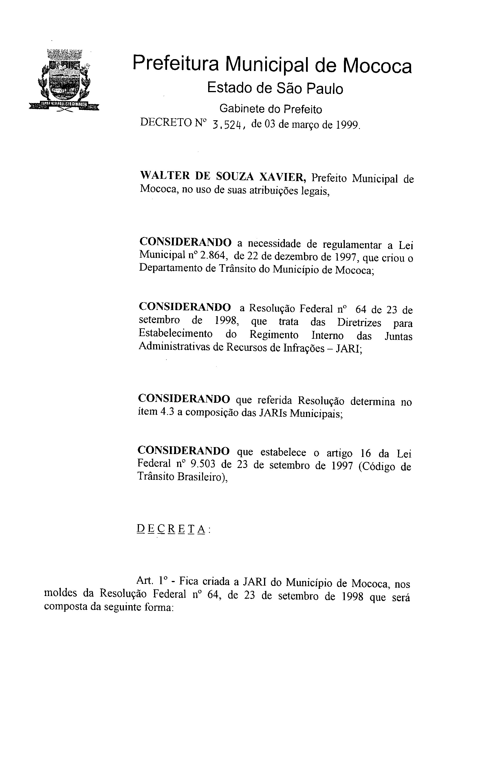 Decreto Municipal nº 3.524, de 03 de março de 1999