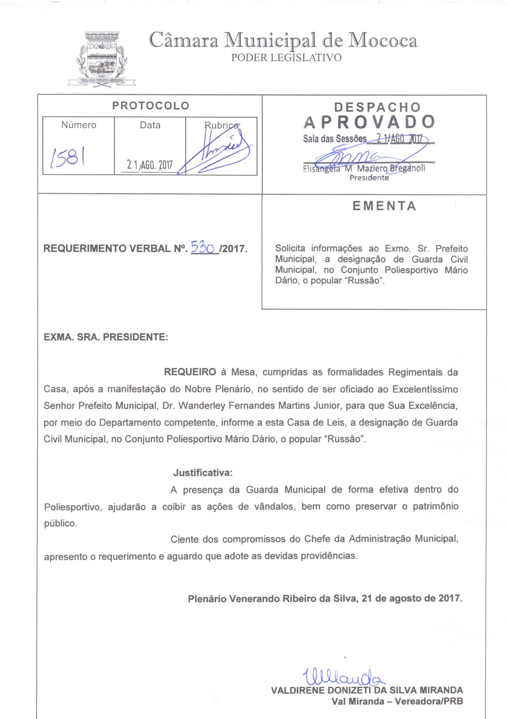 SOLICITA INFORMAÇÕES AO SR. PREFEITO MUNICIPAL, ACERCA DA POSSIBILIDADE DE DESIGNAR UM GUARDA CIVIL MUNICIPAL PARA O POLIESPORTIVO MÁRIO DÁRIO, POPULAR RUSSÃO. - SOLICITA INFORMAÇÕES AO SR. PREFEITO MUNICIPAL, ACERCA DA POSSIBILIDADE DE DESIGNAR UM GUARDA CIVIL MUNICIPAL PARA O POLIESPORTIVO MÁRIO DÁRIO, POPULAR RUSSÃO.