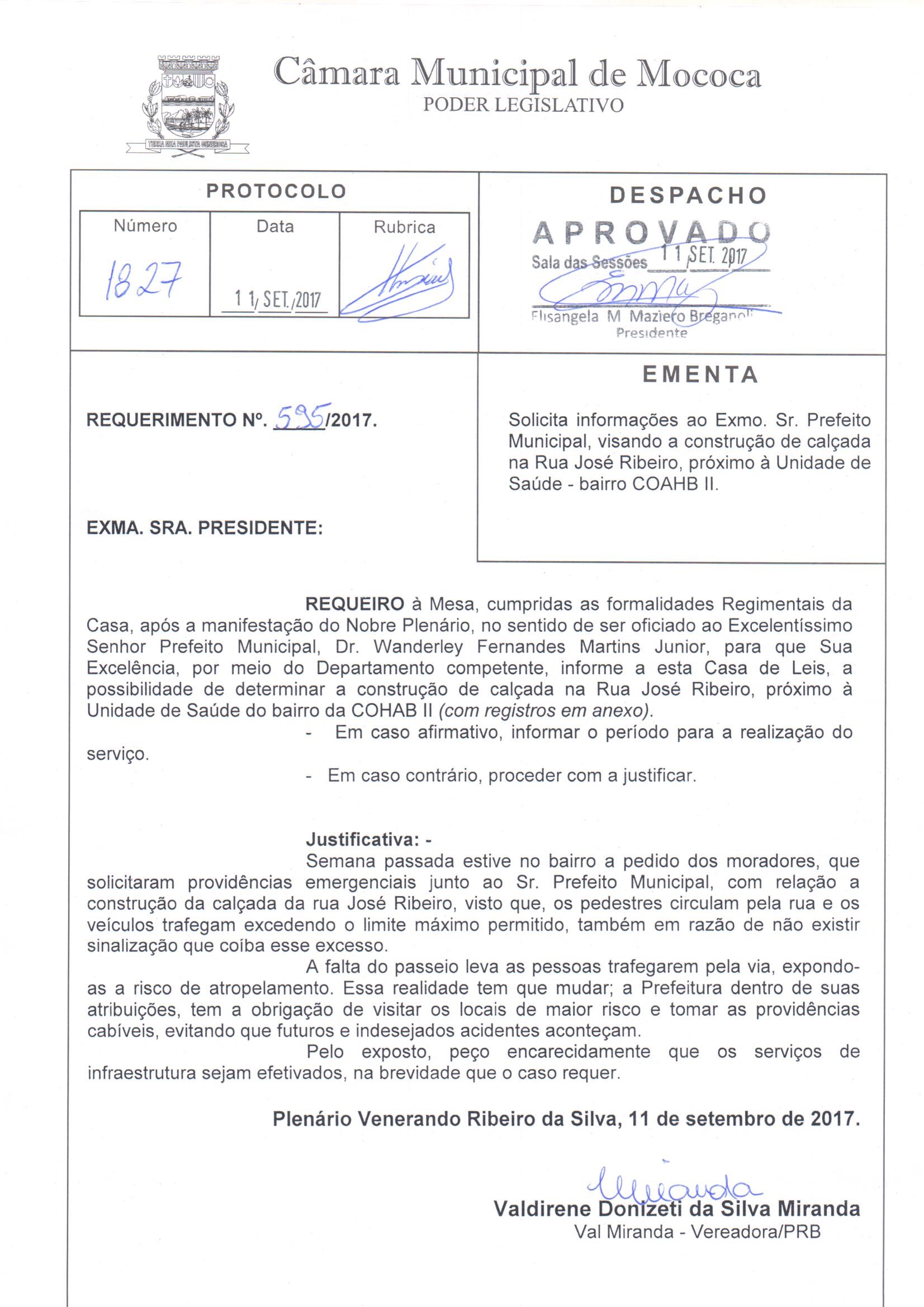 SOLICITA INFORMAÇÕES AO EXMO. SR. PREFEITO MUNICIPAL, VISANDO A CONSTRUÇÃO DE CALÇADA NA RUA JOSÉ RIBEIRO, PRÓXIMO À UNIDADE DE SAÚDE - BAIRRO COAHB II. - SOLICITA INFORMAÇÕES AO EXMO. SR. PREFEITO MUNICIPAL, VISANDO A CONSTRUÇÃO DE CALÇADA NA RUA JOSÉ RIBEIRO, PRÓXIMO À UNIDADE DE SAÚDE - BAIRRO COAHB II.