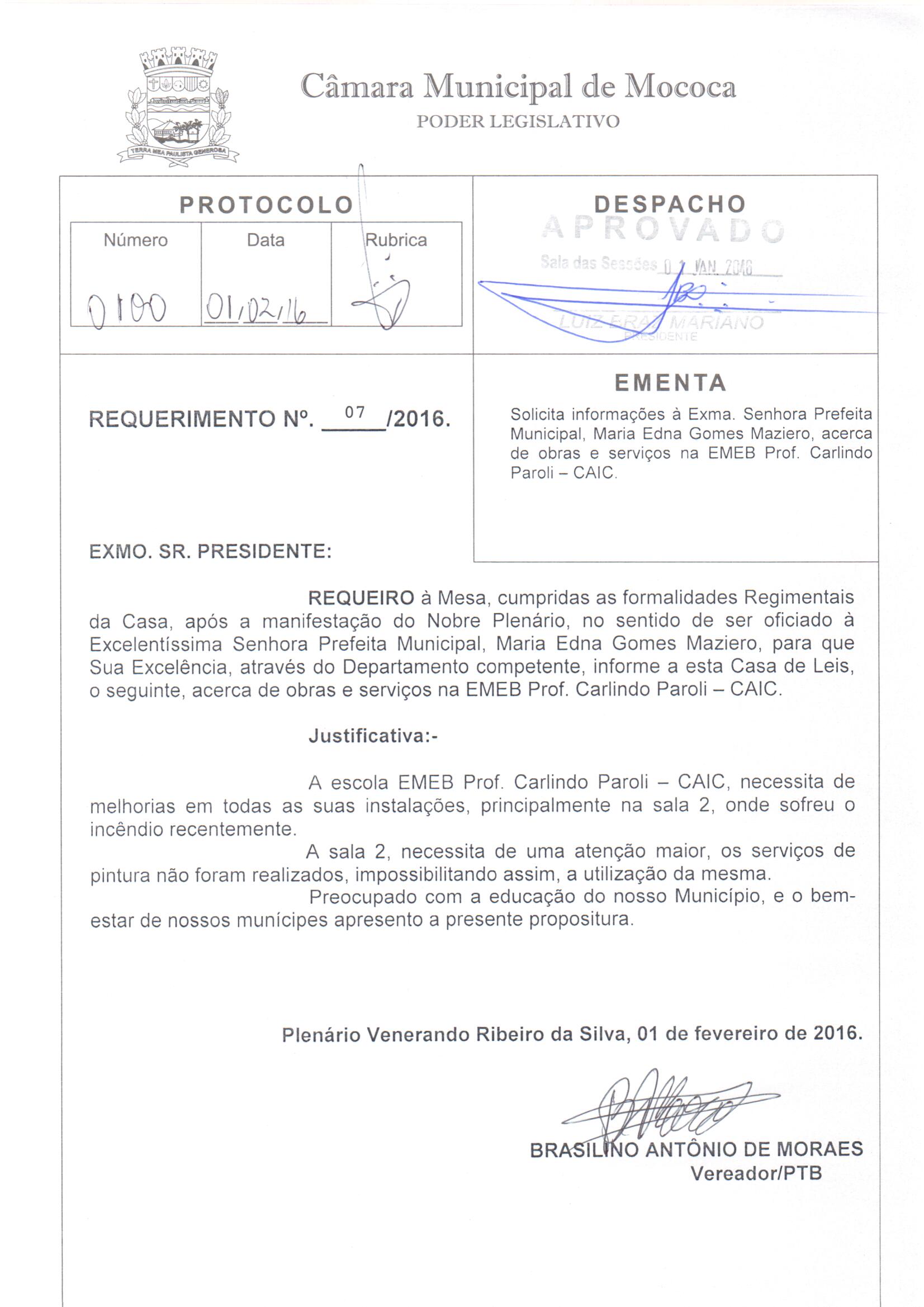 DATA PROTOCOLO: 02/02/2016 - HORÁRIO: 12:56:58 |